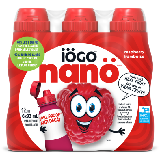 *par portion de 125 mL, les yogourts à boire iÖGO nanö ont au moins 40 % moins de sucre que le yogourt à boire le plus vendu au Canada mesuré en volume KG (Nielsen, TL Nat 5 CH, L52, PE DÉC 28, 24).